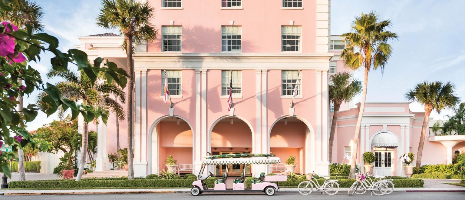 With Clark’s passing in 2006, Rosamond Clark (his widow) and his children assumed ownership. The Clarks ran The Colony with care and, in 2014, recruited interior decorator Carleton Varney (of Dorothy Draper and Company) to execute a $9 million refurbishment. Varney decorated each room with its own distinctive theme, splashing the place with bold hues and lushness. It was he who introduced the famous “Brazilliance” pattern in the halls—and it was he who painted the exterior pink.