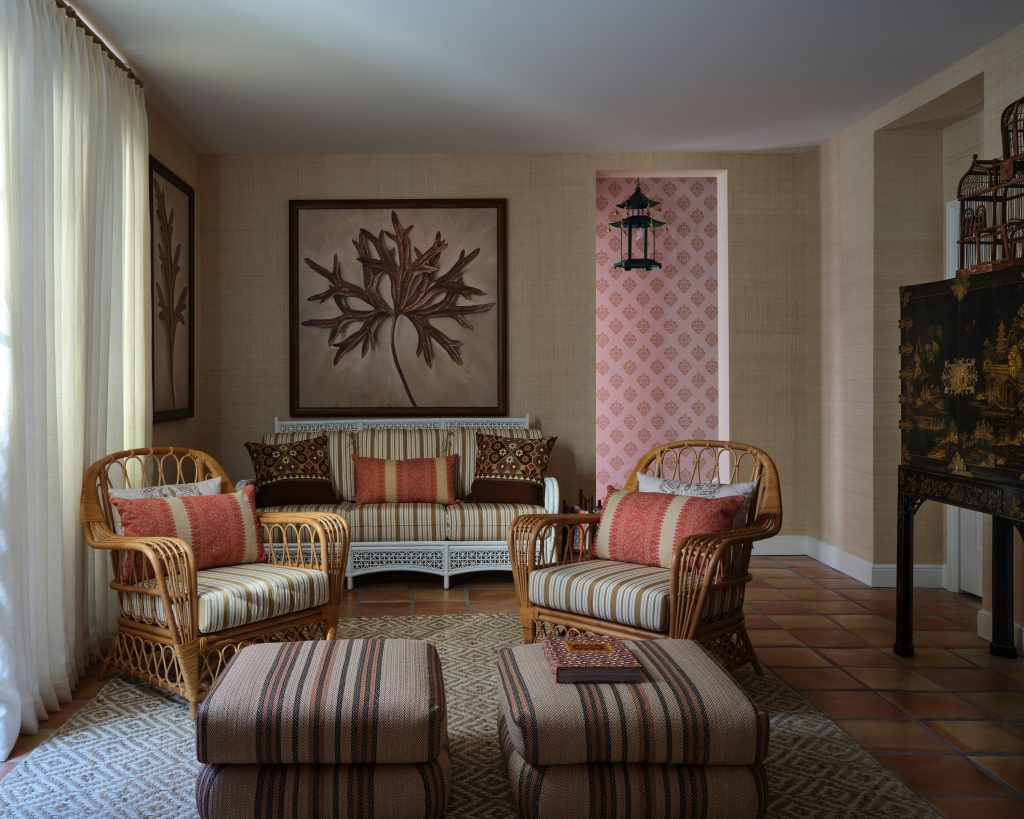 The Colony Hotel partnered with Chairish, America’s premier emporium for vintage and antique furnishings to redesign this sun-filled villa. Chairish’s unparalleled historical design expertise and keen eye for chic and playful irreverence leaves no detail untouched in this luxurious retreat reimagining classic Palm Beach design. This villa mixes historically significant Palm Beach design themes with modern additions like contemporary art, mid-century furnishings, and sophisticated layering. It incorporates classic Palm Beach motifs such as Chinoiserie with faux bamboo and Chinese Chippendale silhouettes and hand-painted flourishes. Tropical animalia appears across lighting, accessories and Schumacher Hospitality fabrics and wallpapers. The colors of the villa are feminine and powdery, appropriate to Florida’s breezy verdant climate.