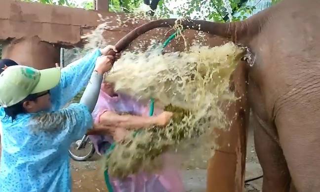 As the veterinarian administered the necessary medication to alleviate the elephant’s discomfort, an unforeseen reaction саᴜѕed the massive creature’s feces to unexpectedly exрɩode, propelling it right into the vet’s fасe.