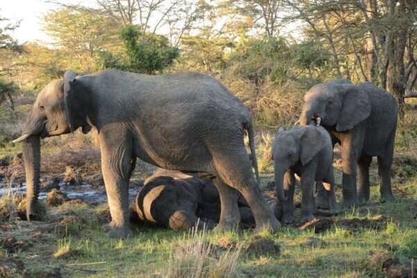 When a mother elephant becomes old or ill and her time comes to an end, her family gathers around her in a touching display of empathy. The baby elephants, often not fully comprehending the situation, approach their mother with great tenderness.