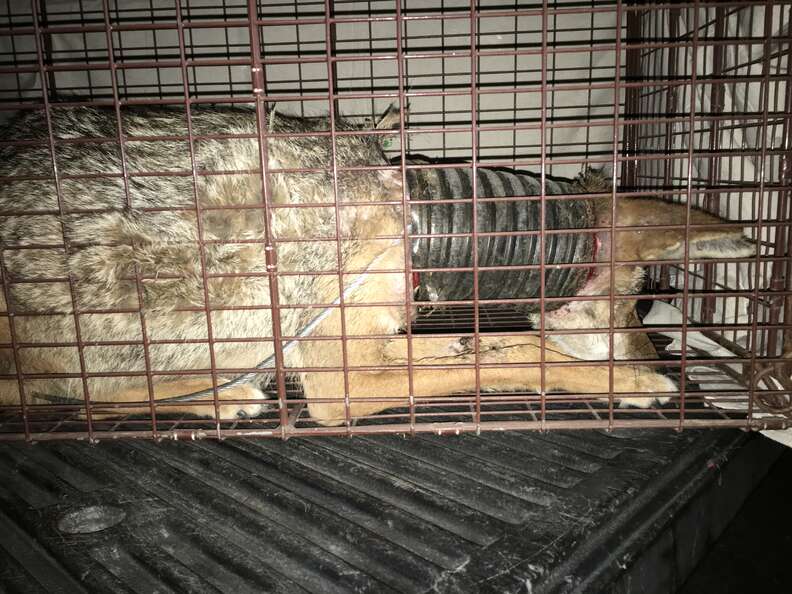 Tomó varias semanas para que los rescatistas atraparan a la coyote, pero tan pronto como lo hicieron, la trasladaron al centro de rescate y le quitaron el tubo de construcción que tenía alrededor del cuello.