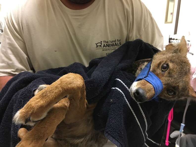¡Los rescatistas llegaron rápidamente para ayudar a la coyote herida!