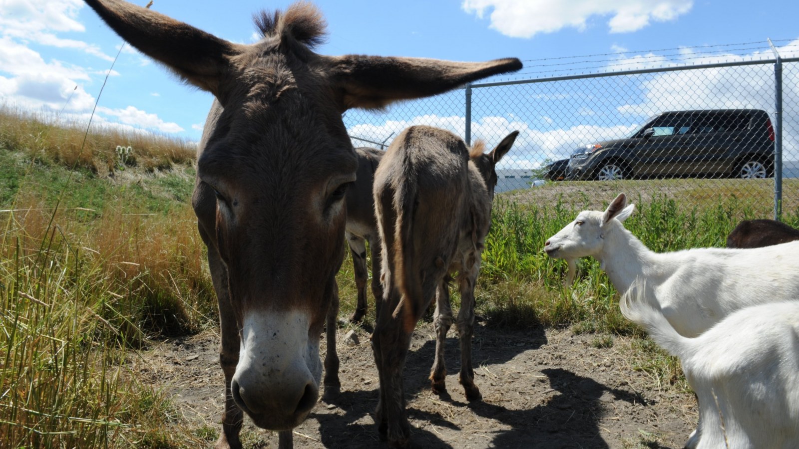 Un oficial de policía lleva a un burro a un lugar seguro en una patrulla después de salvarlo de una carretera muy transitada.